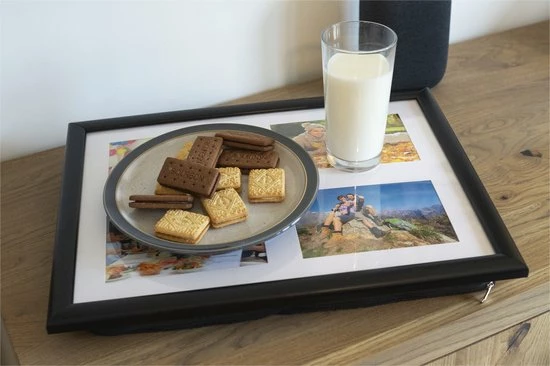 Deze prachtig vormgegeven Lap Tray van St Helens Home Garden is perfect voor het eten van maaltijden weg van de tafel, gebruik van een laptop, schrijven, knutselen, puzzels en andere activiteiten. De lade heeft 4 foto-insteekkaarten, kies uw favoriete gezinsleden, huisdieren, vakantie- of landschapsfoto’s en gebruik ze als het ontwerp voor uw lade, verwijder eenvoudig het transparante vel bovenop de lade, plaats uw favoriete foto’s en sluit ze opnieuw, u kunt verander je gekozen foto’s zo vaak als je wilt. Gemaakt van kunststof met een polyester katoenen zitzakkussen met ritssluiting. De zitzak vormt zich naar je schoot en geeft je meer stabiliteit dan een standaard dienblad. Het transparante blad aan de bovenzijde van de tray garandeert jarenlang gebruik en is daarnaast zeer eenvoudig schoon te houden. Het platte oppervlak van het dienblad is een royale 29,5 cm x 39,5 cm.