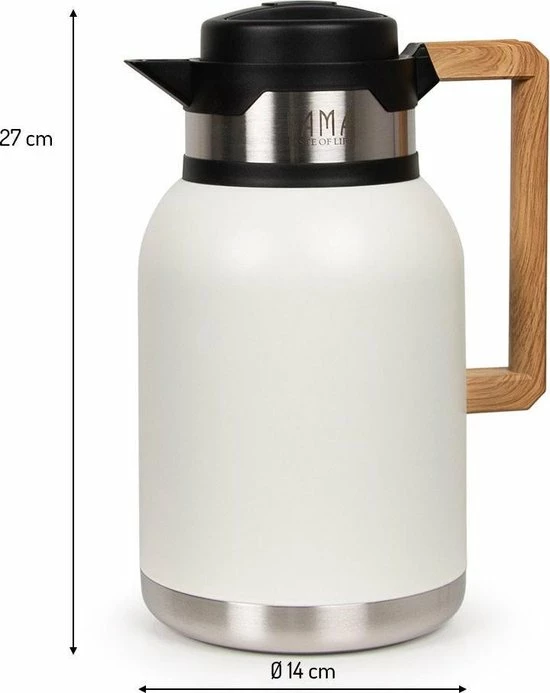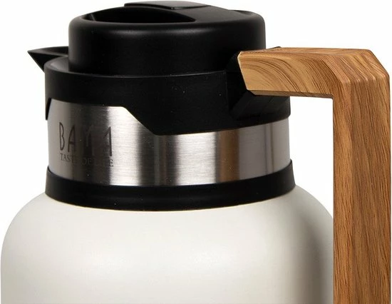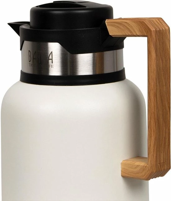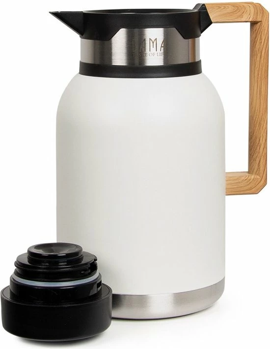 De Lucia thermoskan van Bama heeft een prachtige matte afwerking en een unieke handgreep in houtlook. De isoleerkan van dubbelwandig RVS houdt je dranken urenlang op temperatuur: warme dranken blijven tot 12 uren warm, koude dranken blijven tot 24 uren fris gekoeld. De kan is 100% lekvrij, voorzien van een grote opening en is schokbestendig.