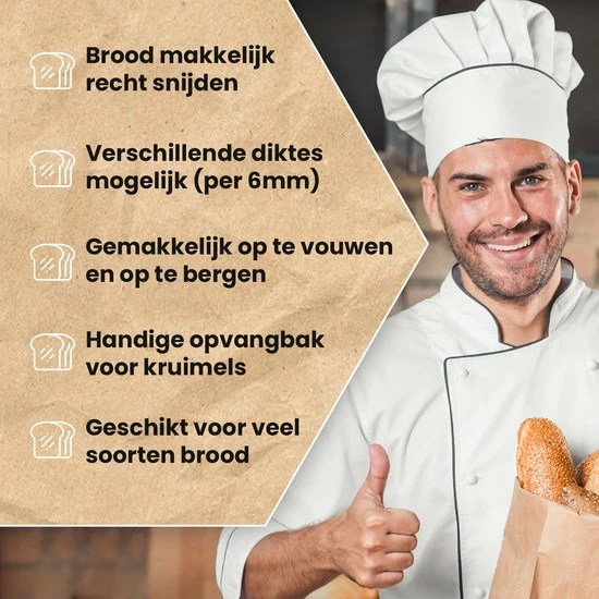 Druk nu op “In winkelwagen” en geniet zo vroeg als morgen al van deze hoogstaande BeerGear broodsnijder.