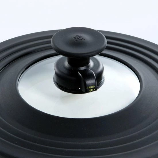 Let op: Het wordt aanbevolen de deksel te gebruiken op pannen op een elektrische- of inductiekookplaat. Bij gebruik op het gasfornuis kan de siliconen dekselrand eerder beschadigen.