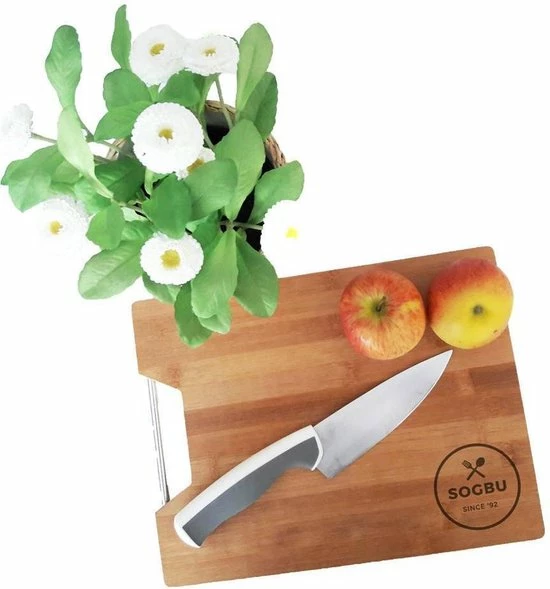 Deze moderne snijplank is door z’n formaat ideaal in het gebruik. Door het dikke bamboe blad erg stevig en het RVS handvat zorgt ervoor dat je de plank makkelijk kunt vastpakken en ophangen.