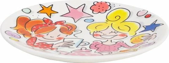 Kom in de vrolijke sferen met deze leuke petit four van de aanvulling op de Even Bijkletsen collectie. Op dit petit fourtje staan twee vriendinnen afgebeeld, omringd door allerlei zoetigheden, sterren en stippen. Gebruik dit bordje om je theezakje op te leggen of om heerlijke desserts op te serveren. Dit bordje is leuk te combineren met alle andere items van de Even Bijkletsen collectie.