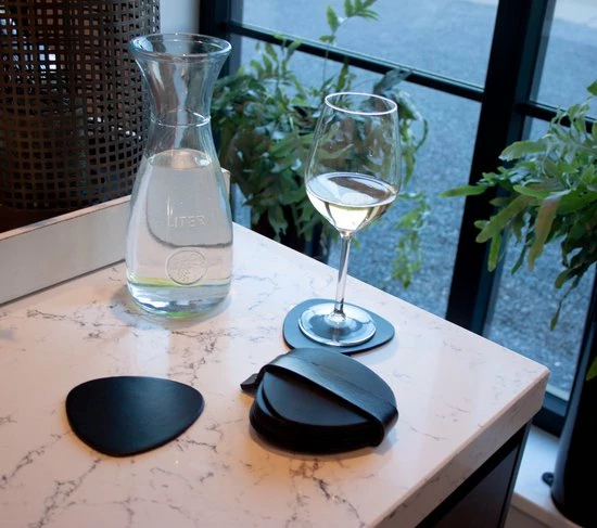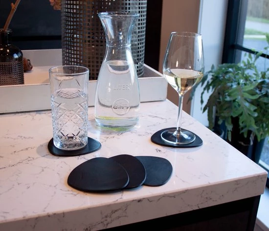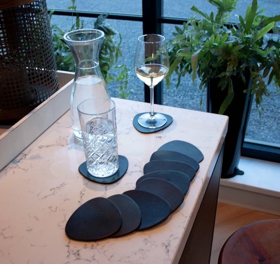 De onderzetters zijn zowel te gebruiken voor koud glas cola, als voor een heet kopje thee. De onderzetters zijn namelijk bewerkt met een waterafstotende en hittebestendige coating. Wil je ze netjes opbergen? Gebruik dan de bijpassende houder. Zo heb je geen last van rondslingerende onderzetters en hou je de tafel netjes!