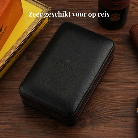 Bent u op zoek naar een fijne doos om uw sigaren mooi in op te bergen? Dan is de Cohiba sigarendoos precies wat u zoekt! De Cohiba sigarendoos is gemaakt van hoge kwaliteit cederhout en leer wat zorgt voor een luxe uitstraling. Niet alleen is er plek voor 4 sigaren, maar u kunt er ook uw aansteker en sigarenknipper in kwijt. Kortom een must have voor iedere sigarenliefhebber!