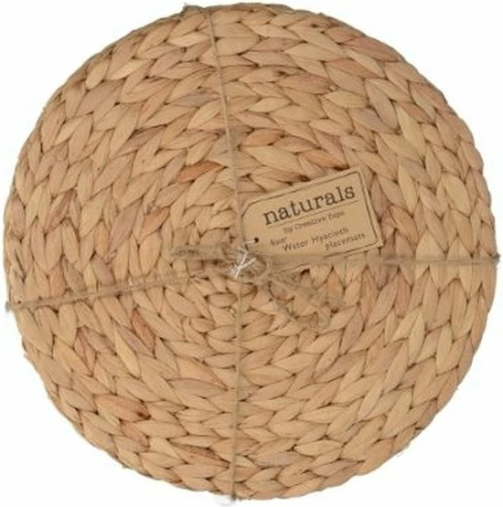 Met deze 4 ronde, geweven placemats van Creative Tops geef je de eettafel een rustieke en natuurlijke uitstraling. En dat terwijl je ook nog een milieubewuste keuze maakt! De placemats zijn namelijk gemaakt van waterhyacint. Deze snelgroeiende plant kan in 2 weken in omvang verdubbelen. Door de plant regelmatig te oogsten, wordt het water waar hij op groeit in evenwicht gehouden en blijft deze rijk aan zuurstof. De geoogste plant kan vervolgens geweven worden tot bijvoorbeeld deze mooie placemats. Omdat de placemats een diameter van 30 cm hebben, zijn ze ideaal voor het serveren van grote dinerborden en zelfs voor serveerschalen. Daarnaast voorkomen ze krassen op tafel en kunnen ze met een vochtige doek eenvoudig schoongeveegd worden.