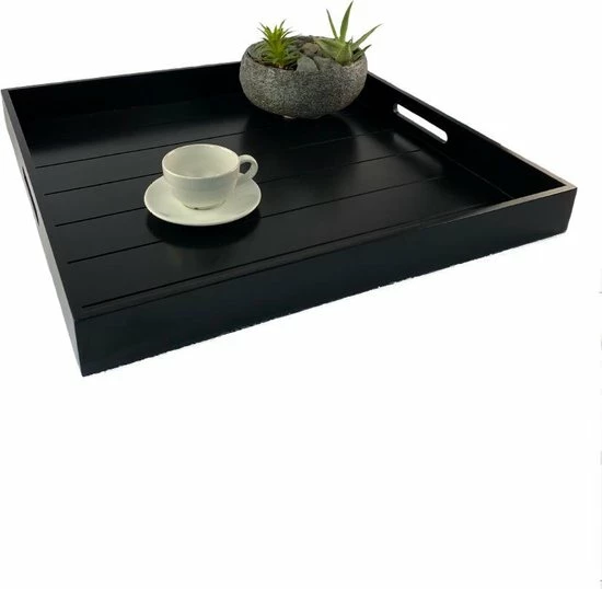WDMT™ XL Dienblad XL | 56 x 56 cm | Extra groot houten dienblad met afneembare coating en handvaten | Zwart