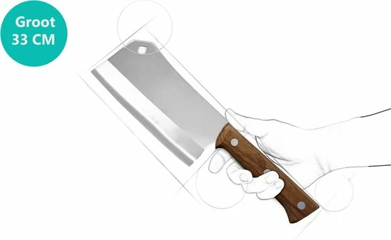 | Verpakkingsinhoud | Hakmes, 33, cm, Heavy, Duty, hakmes, 470, gram, -, koksmes-, vleesmes, -, RVS, Keukenbijl, Slagersmes, voor, het, hakken, van, botten, Stevig, keukenmes |