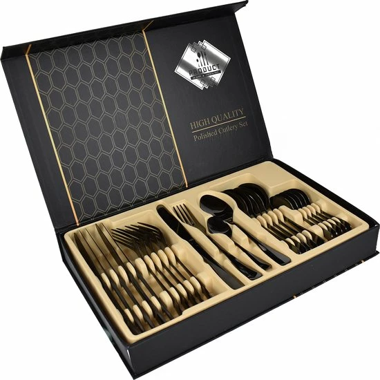 De bestekset van Dymund wordt geleverd met een prachtige opbergdoos. Zo kunt u de bestekset gemakkelijk opbergen en gebruiken bij speciale gelegenheden.