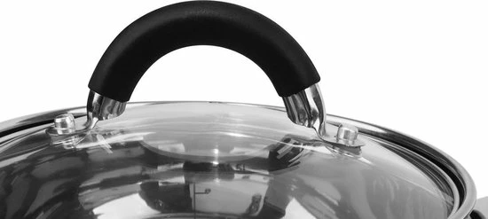 - Kookpan met glazen deksel: inhoud 4.0 liter, 20 x 12.5 cm