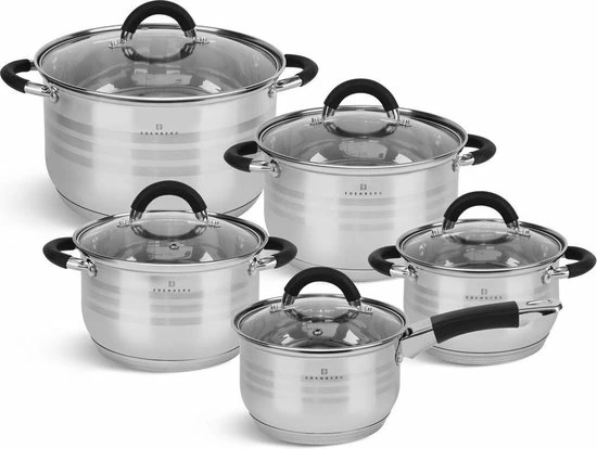 Prachtige 10-delige pannenset van hoge kwaliteit. Een set gemaakt van hoogwaardig roestvrij staal. Product gerenommeerde merk Edënbërg . Dankzij de speciale bodem wordt de warmte snel verdeeld, waardoor je energie bespaart. In de pan zit een praktische maataanduiding voor gebruiksgemak.
