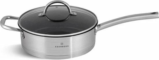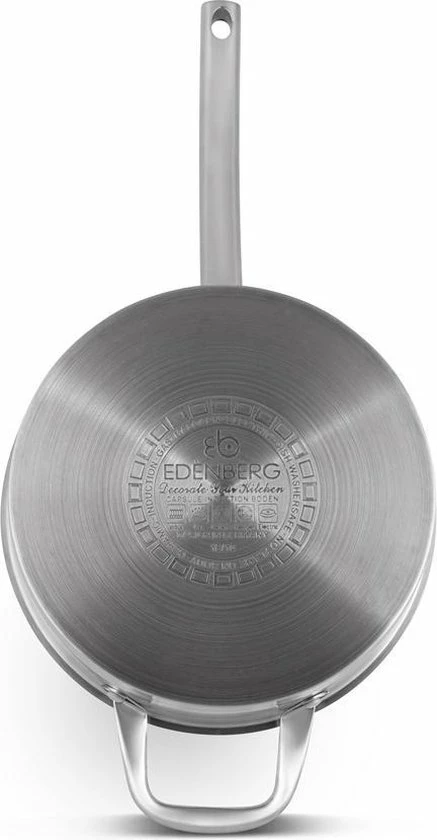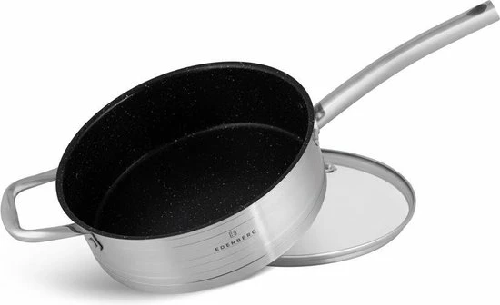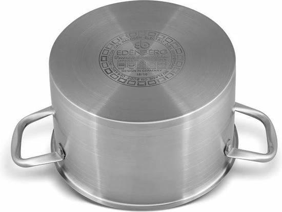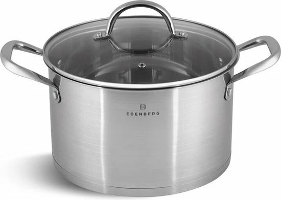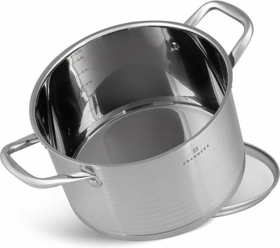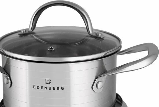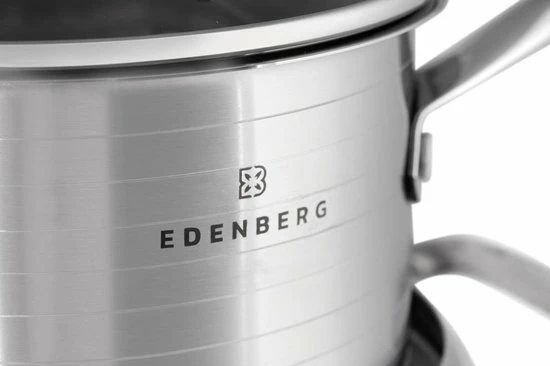 Prachtige 12-delige pannenset van hoge kwaliteit. Een set gemaakt van hoogwaardig roestvrij staal. Product gerenommeerde merk EDËNBËRG . Dankzij de speciale bodem wordt de warmte snel verdeeld, waardoor je energie bespaart. In de pan zit een praktische maataanduiding voor gebruiksgemak.