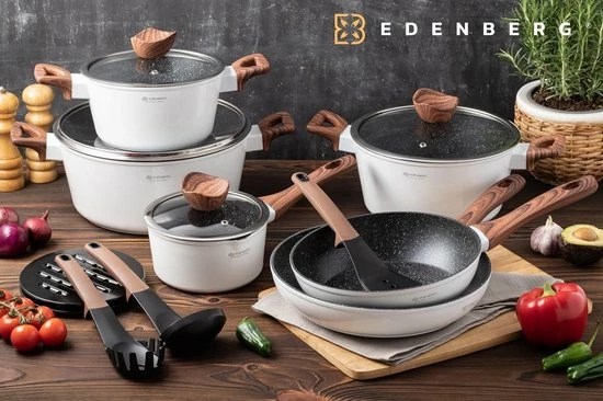 Edënbërg White Line Pannenset -15-delig – Gesmeed Aluminium