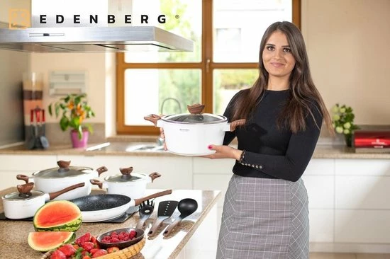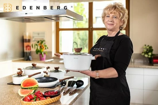 Decorate your kitchen since 1961 Het merk Edënbërg staat bekend om haar hoogwaardige kwaliteit/prijsverhouding . Edënbërg onderscheidt zich door innovatieve producten aan te bieden, die op de consumenten zijn ingesteld. Elk product van Edënbërg staat bekend om haar duurzaamheid en uiterst praktisch gebruik in de keuken. Tevens staat Edënbërg bekend om haar kwaliteit en precisie. Edënbërg is gespecialiseerd in de productie van pannen, fluitketels, broodtrommels, messen, stoompannen, kruidenrekjes, afdruiprekjes, bestek en nog veel meer keukenaccessoires.