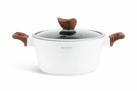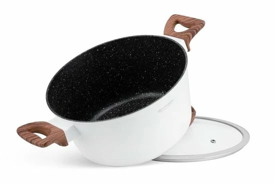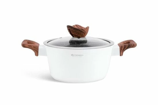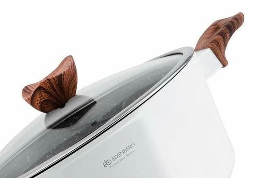 Deze prachtige pannenset van Edënbërg wordt geproduceerd onder de strengste Duitse normen en met het beste aluminium. De bodem is bedekt met maar liefst 3 lagen marmer met een mooie zwarte binnenkant die niet verkleurd. Dankzij de dikke bodem zijn de pannen zeer duurzaam en wordt het eten gelijkmatig verwarmd. De pannen kunnen worden gebruik op een kookplaat en ook op een fornuis met inductie.