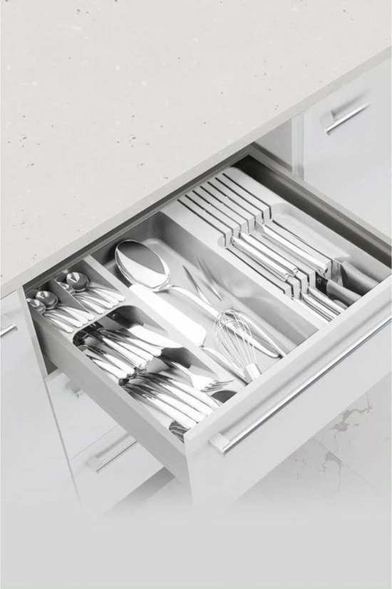 Je maakt een einde aan de verwarring met het In-Drawer Bestek, waar je al jouw benodigde keukenbenodigdheden kunt ordenen.