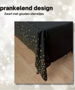 Korting ✨ FeestSpot – 2x Zwart/Goud Plastic Wegwerp Tafelkleed – Tafelzeil – Kerst – 137×274 ????