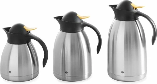 Met deze dubbelwandige isoleerkan van de Hendi schenkt u de lekkerste warme dranken. Deze isoleerkan heeft een inhoud van 1 Liter en is uitgevoerd met een drukknop voor het snel en veilig inschenken van de dranken.