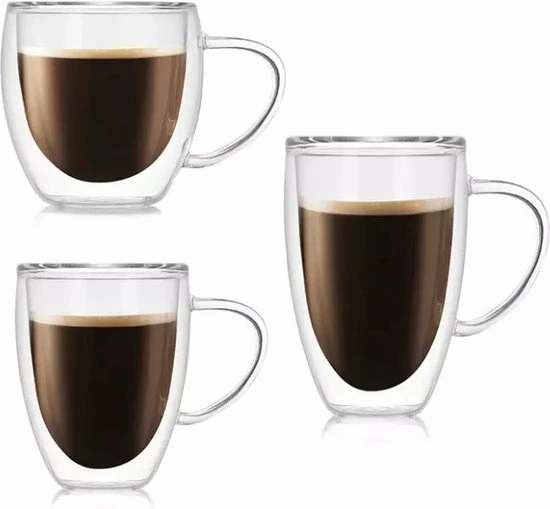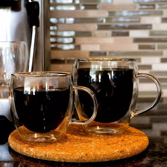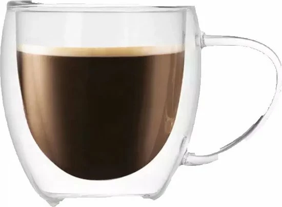 Dubbelwandige bekers van geblazen borosilicaatglas van de hoogste kwaliteit.