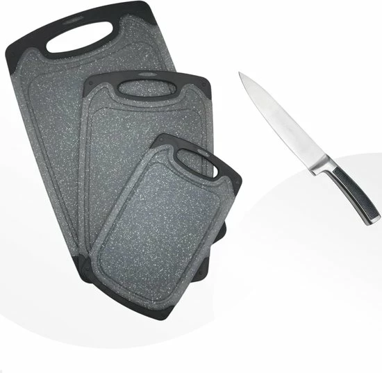 Met deze snijplankenset ben je verzekerd van grip. De Anti-Slip strips geven voldoende grip op vrijwel elk aanrechtblad. Deze mooie en praktische set bevat 3 snijplanken welke voor verschillende voedselsoorten gebruikt kunnen worden! De planken hebben elk een dikte van 1CM en zijn voorzien van een lekrand.
