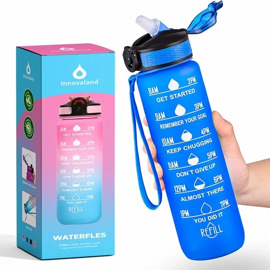 Heb je de neiging te weinig water te drinken gedurende de dag? Met de Innovaland waterfles is dat probleem voorbij. Het is zeer gezond om water te drinken en dankzij de motiverende waterfles drink je eindelijk 2 liter water per dag. Dit zal veel gezondheidsvoordelen hebben, zoals meer energie, meer gewichtsverlies en minder hoofdpijn.