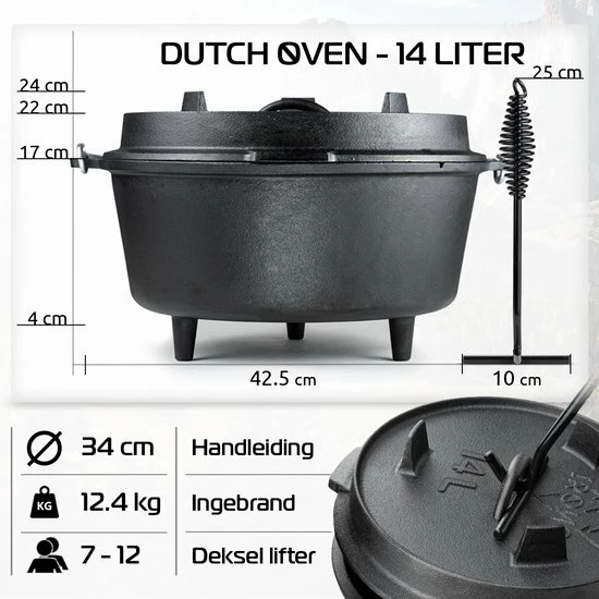 Veelzijdige Gietijzeren Dutch Oven 14 Liter.