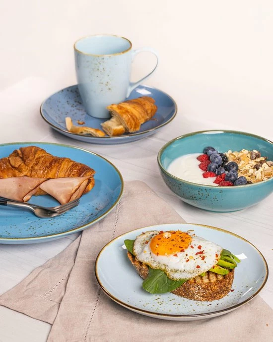 | Set bestaat uit | Mok, Dinerbord, Kom, Ontbijtbord |