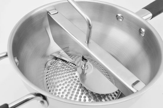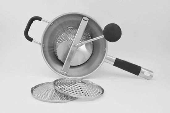 Deze luxe passeerzeef kan worden gebruikt voor het maken van verse appelmoes, aardappelpurees, soepen, jams en bijvoorbeeld babyvoeding. De passeerzeef beschikt over drie verwisselbare inzet schijven, (fijn, medium en grof) hiermee kan de diameter worden gekozen voor de bereiding.