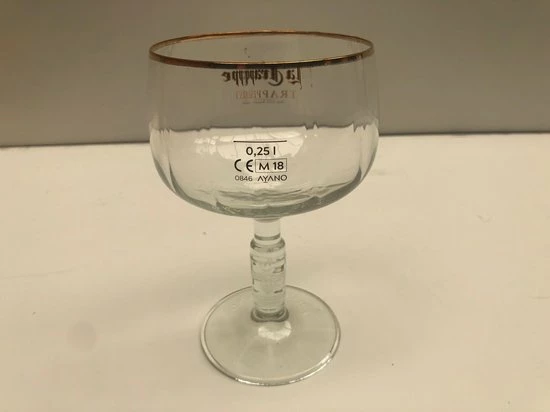 La Trappe Bierglas Bokaal 25 clHet La Trappe Bokaal Bierglas 30 cl is een officieel bierglas en heeft een elegante uitstraling, met een bruine afwerking aan de bovenkant. Dit glas wordt per stuk geleverd en heeft een inhoud van 30 cl.
