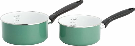 Smakelijk en energiebesparend koken maar ook heel gezond! Professionele en zware kwaliteit emaille 2-delige pannenset. De steelpannen zijn zeer trendy en modern tegelijk met de trendy olijf groene kleur die ze hebben. Ze zijn geschikt voor alle warmtebronnen, inclusief inductie. De pannen zijn energiebesparend doordat ze de warmte goed vasthouden. Klein pluspuntje: de pannen zijn uitstekend geschikt voor mensen met een nikkelallergie. Ook zijn de pannen ovenvast en vaatwasmachinebestendig.