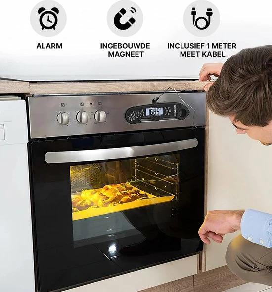 Deze BBQ thermometer word geleverd met een sonde van 1 meter. Deze is aan te sluiten op de zijkant van de thermometer. Ideaal om tussentijds de tempratuur te controleren zonder de deksel van de BBQ of de oven open te maken waardoor er hete lucht ontsnapt.