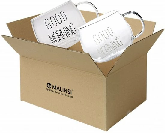 Hele mooie maar vooral luxe Malinsi glazen die lang mee kunnen! Niet alleen is het ontwerp prachtig en zeer handig maar ook het glas is gemaakt van borosilicaatglas. Dit houdt in dat het glas sterker is dan normaal glas maar ook veel lichter waardoor het geschikt is voor meerdere producten zoals Limonade, thee, koffie, desserts of ontbijt. Krasbestendig, kan tegen een stootje en kan goed tegen hitte en kou terwijl je dat niet zou verwachten van zo een groot glas. Bij één aankoop ontvangt u 2 stuks glazen waarbij de Good Morning tekst wit en zwart is zoals op de foto’s te zien. Een zeer mooie en handige toevoeging voor in huis of een leuk cadeau voor een ander!