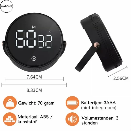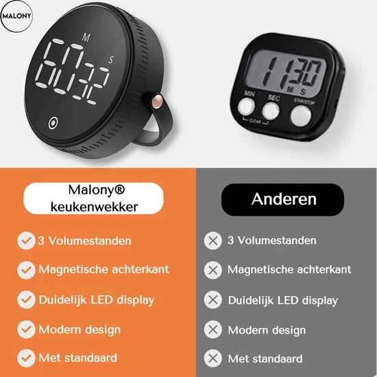 Met de keukenwekker van Malony® kun jij altijd makkelijk de tijd bijhouden!