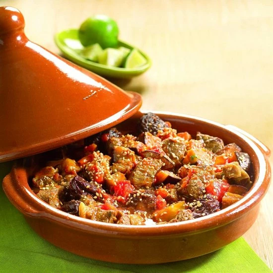 Het serveren van gerechten kan rechtstreeks uit de tajine, omdat bij de bereiding in de tajine niet alleen alle sappen, maar ook alle geuren bewaard blijven, is het een ware geursensatie om de tajine op tafel in het bijzijn van alle gasten te openen!