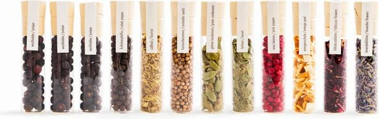 – 12 buisjes met 10 verschillende hoge kwaliteit Botanicals – kruiden om de lekkerste gin te maken