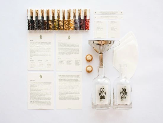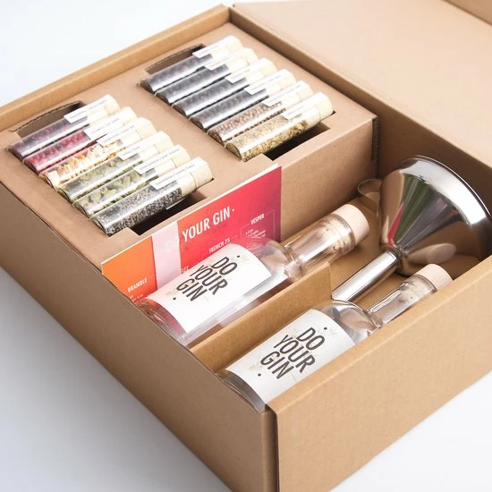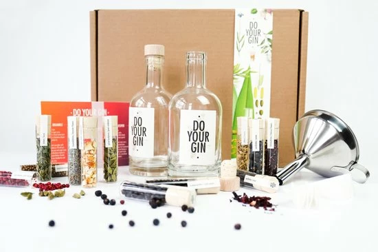 Maak je eigen botanical gin. Met deze geschenkset kan je met 10 verschillende kruiden en originele recepten je eigen smaak gin maken.