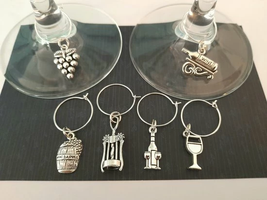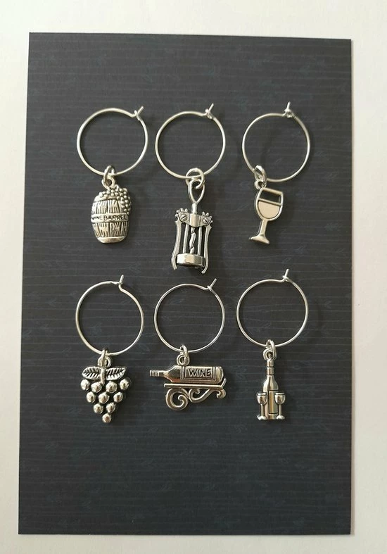Set van 6 glasmarker, wijnglasdecoratie met wijn figuurtjes.