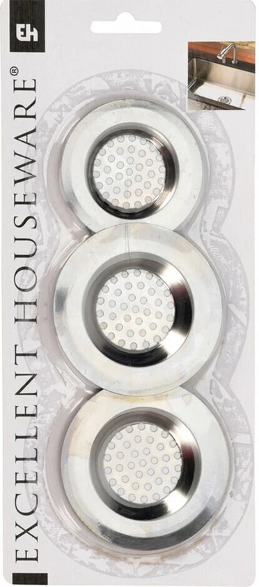Deze Gootsteenzeef RVS 3 stuks is ideaal om het water in de gootsteen goed af te laten voeren. Dit putje spoelt het water van de gootsteen goed door, waardoor het water niet of nauwelijks omhoog zal komen in de gootsteen. Als je toevallig 3 gootstenen hebt in huis of reserve wilt, dan is deze set van 3 gootsteen putje echt iets voor jou! Het is gemaakt van roestvrij staal en de kleur van de drain is zilver.
