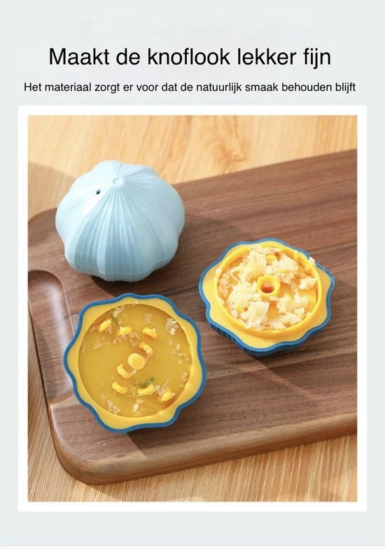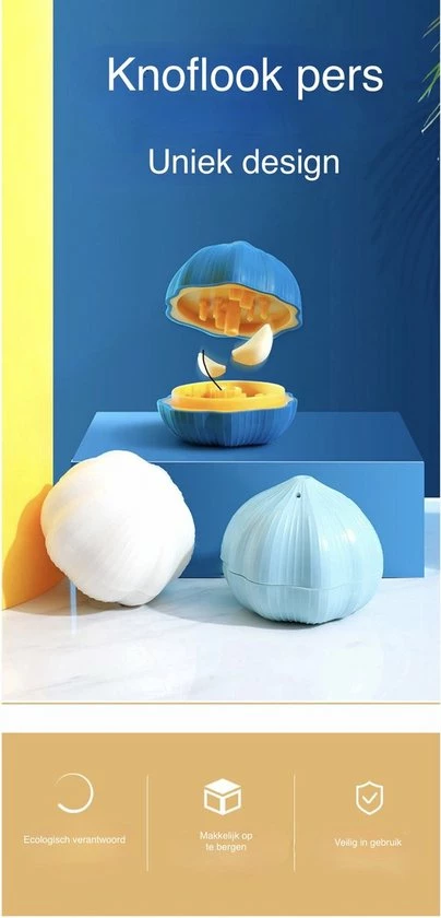 En dan is knoflook ook nog eens een kruid dat veel in de moderne nederlandse keuken wordt gebruikt. Of je nu gerechten als bloemkoolsoep, groentegesmoorde spitskool of een lekkere pasta eet, overal kan dit kruid in verwerkt worden. Omdat dit product altijd gemaald het gerecht in moet bieden wij u daarvoor een moderne en unieke knoflookperser. Deze pers wordt geleverd in de kleuren: wit, licht blauw en donker blauw. Hij is 7.5 centimeter lang, heeft 7.5 centimeter breedte en is 7 centimeter hoog. Door zijn Unieke ontwerp is het een pers die je op de aanrecht kan laten staan zonder dat het rommelig oogt. Het is een verreiking voor iedere keuken en het meest geweldige cadeau wat je op de verjaardag van je favoriete schoonmoeder kan geven.
