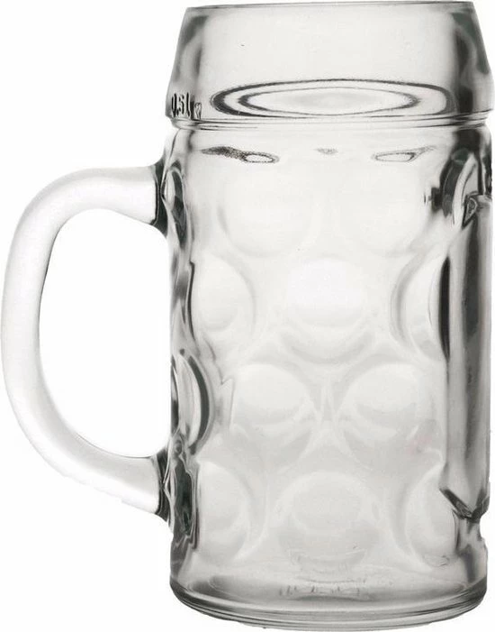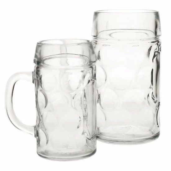 Bierpullen/Bierglazen. Echte grote feest bierpullen met een inhoud van 1 liter. Schenk uw bier tijdens feest in bierpullen. Dit zijn de echte grote Duitse bierpullen voor Oktoberfest of Apre ski feesten gemaakt van glas. Bierfeest Oktoberfest feest artikelen.