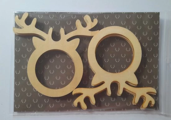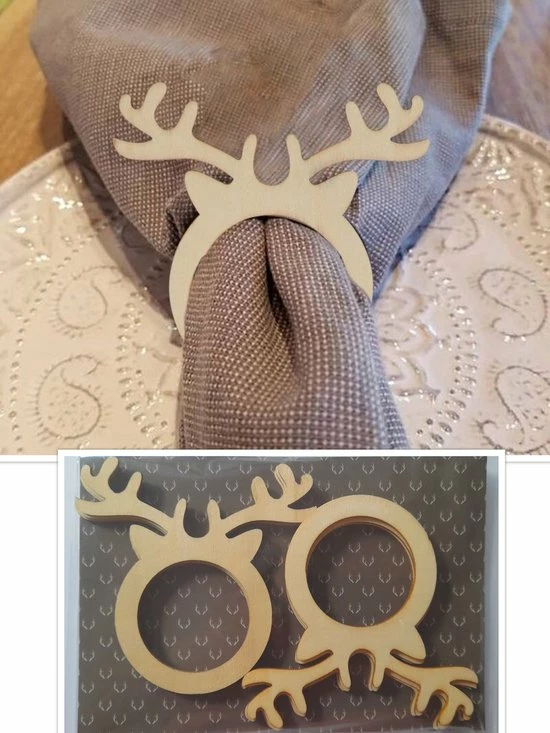 Houten servetringen, set van 8 stuks, rendier, Rudolf.
