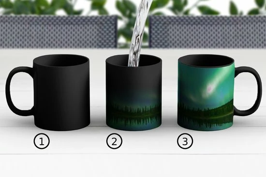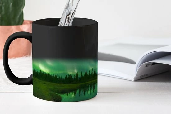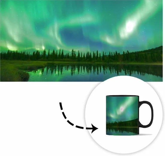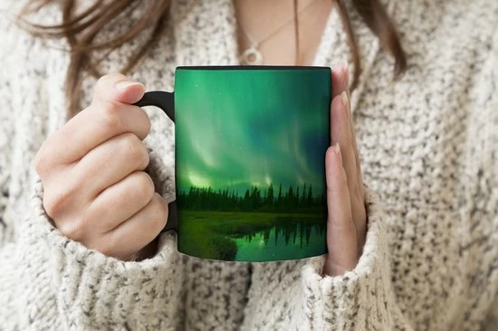 Warmte mok – Noorderlicht – Bomen – Water – Alaska – Mok met foto