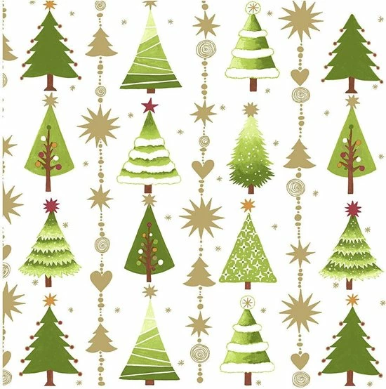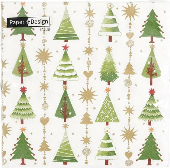 Korting ???? Paper Design 20x Kerst Servetten Wit Met Kerstbomen 33 X 33 Cm – Kerstdiner – Tafeldecoratie Wegwerp Servetten ????