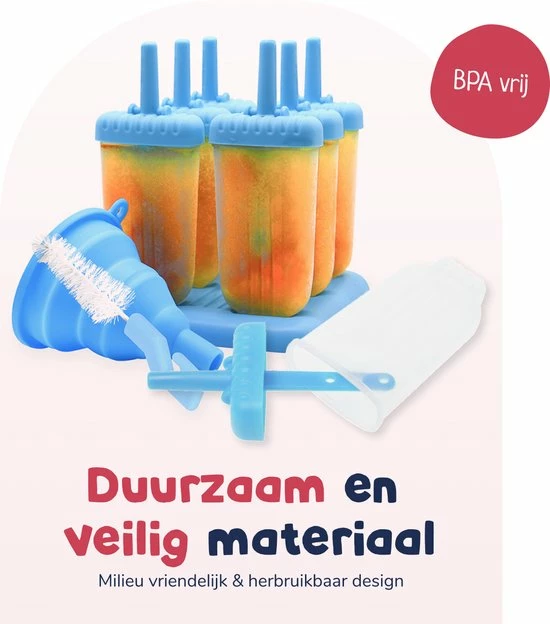 - Herbruikbaar – De ijslolly vormen zijn geschikt voor in de vaatwasser waardoor ze meerdere zomers meekunnen. De set wordt geleverd inclusief schoonmaak borstel.