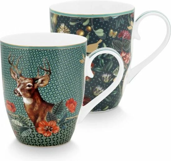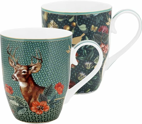Deze prachtige porseleinen set van twee mokken uit de Winter Wonderland collectie is een ideaal cadeau voor de echte koffie- en theeliefhebber. Maak van het drinken van warme dranken een feestje met deze prachtig gedecoreerde mokken. Op de mokken zijn winterse elementen afgebeeld, zoals eikels, bloemen, bessen en een hert. De mokken komen in een leuke giftbox.
