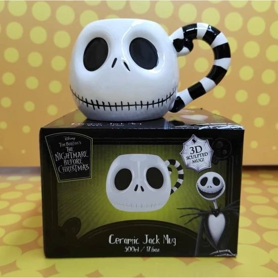 Dit is een keramische mok met opdruk van Jack uit Nightmare Before Christmas. De mok is van stevige kwaliteit en voorzien van een officiële licentie. Deze mok wordt verzonden in een stevige design doos. De mok is vaatwassser- en magnetronbestendig, maar om de kwaliteit van de print op de mok te waarborgen, adviseren we de beker met de hand te wassen.