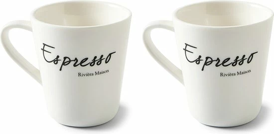Uitgang ???? Riviera Maison Classic Espresso Mug – Espresso Kopjes Porselein – Mokken Set Van 2 – 125 Ml ????