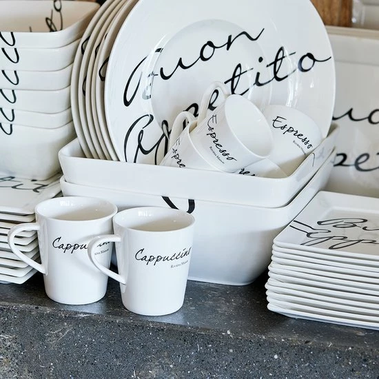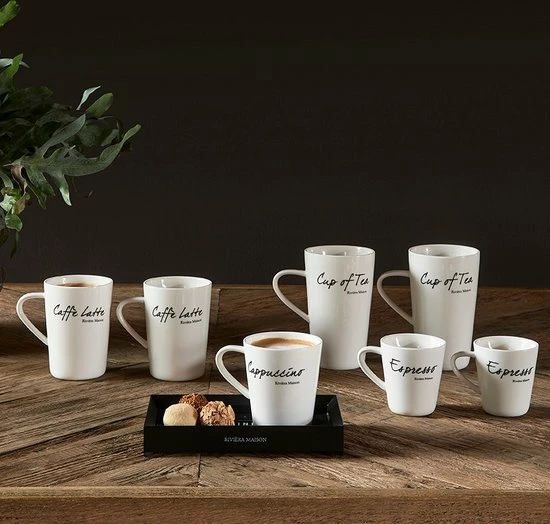 De Classic koffie-en theekopjes serie van Riviera Maison zijn mooi vormgegeven. De kopjes zijn met tekst bedruk en daarnaast ook verkrijgbaar in een espresso, cappuccino, caffè latte en thee variant. KENMERKEN: – Materiaal; Porselein- Oven, magnetron en vaatwasser bestendig- Afmetingen; (L)x(B)x(H) 9.5x7x7.5 cm