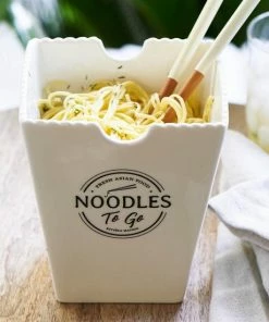 Lekker Aziatisch kokkerellen en dan de maaltijd in deze to go bekers serveren. Van mooi, wit porselein met opschrift. Of gebruik een paar van deze bekers als schalen voor de verschillende gerechten. Voor noedels bijvoorbeeld, of voor rijst of pittige groenten. Mogelijkheden te over voor wie even out of the box denkt.