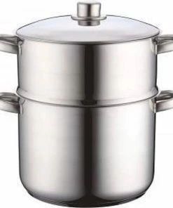 Het onderste deel bevat het water, gekookt en kratten stoom, terwijl het bovenste deel het voedsel vasthoudt.
