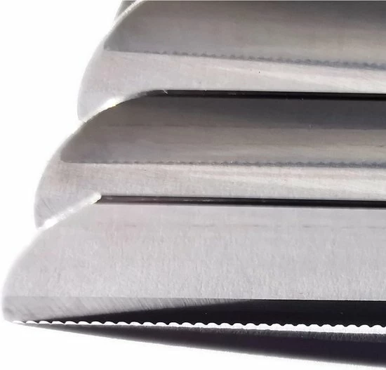 - Ergonomisch gevormde handgreep. Eenvoudig en snel werken. Zeer scherp lemmet is vaatwasser bestendig. (Handmatige reiniging aanbevolen).